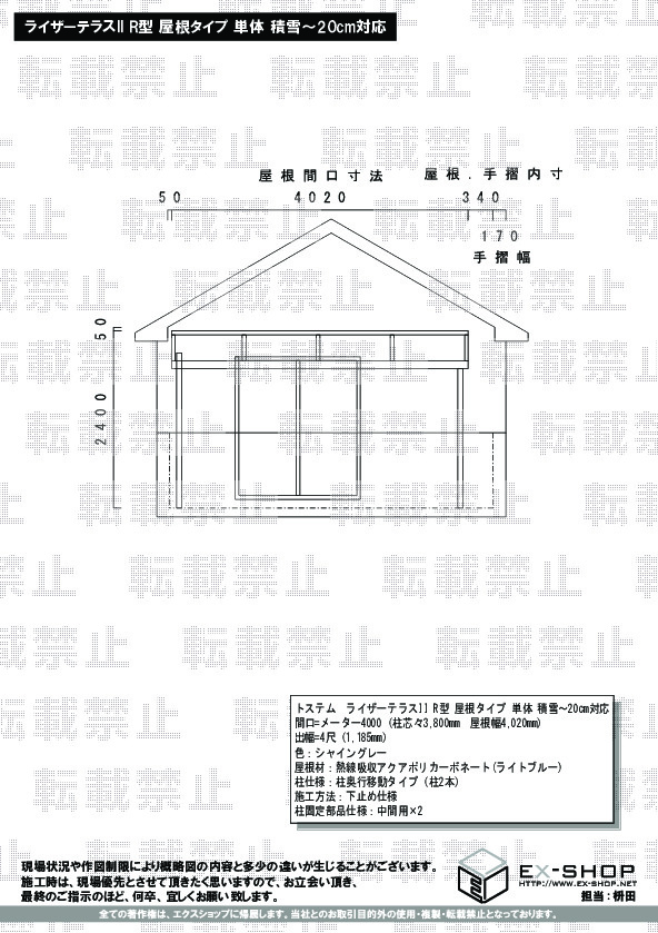 サイズ | 屋根幅 4,020mm 出幅 1,185mm |