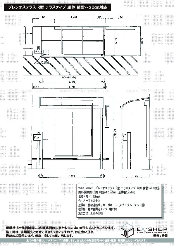 | サイズ | 屋根幅 2,760mm 出幅 1,170mm |