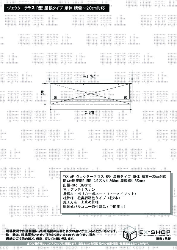 | サイズ | 屋根幅 4,580mm 出幅 870mm |
