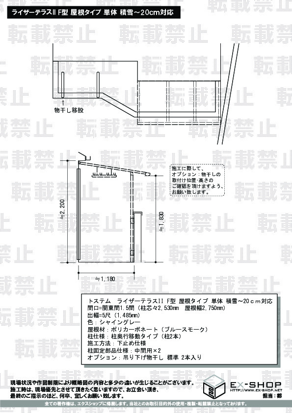 サイズ | 屋根幅 2,750mm 出幅 1,485mm |