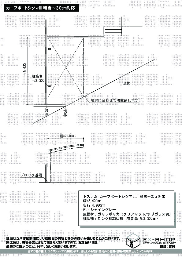 | 屋根高等 | ロング柱23仕様(有効高 約2,300mm) |