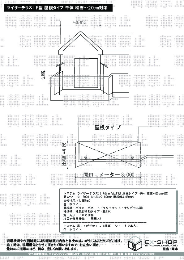サイズ | 屋根幅 3,020mm 出幅 1,185mm |