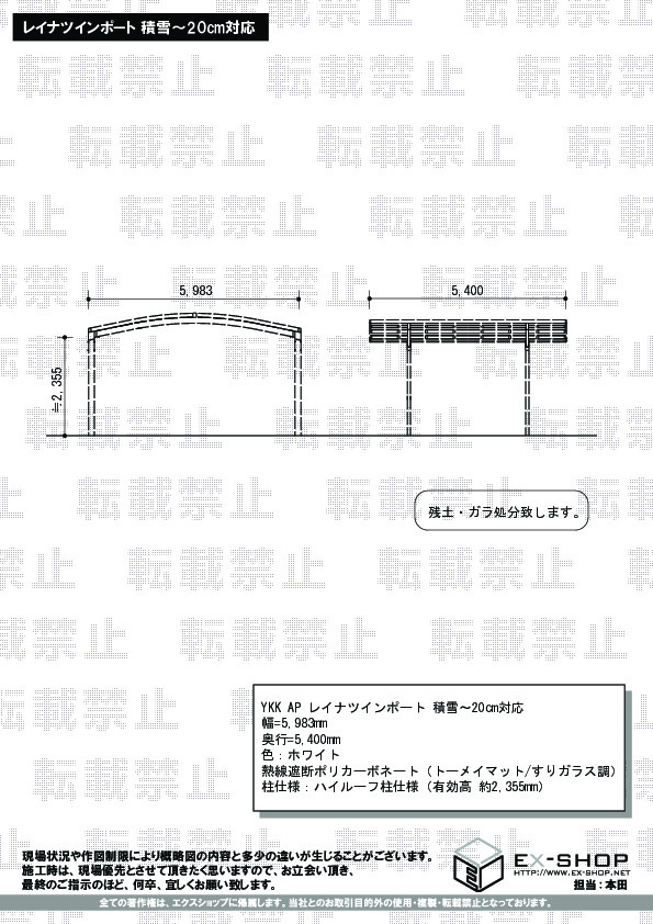 明るい日差しをいっぱいに受けて輝くレイナツインポートが、大変美しいですね。屋根高につきまして、事前のご説明が至らず、申し訳ございませんでした。今後は、お客様のご要望を確実に把握し、100%ご満足頂ける施工となりますよう、提携施工店とも協力して参りたいと存じます。この度のご利用、誠に有り難うございました。