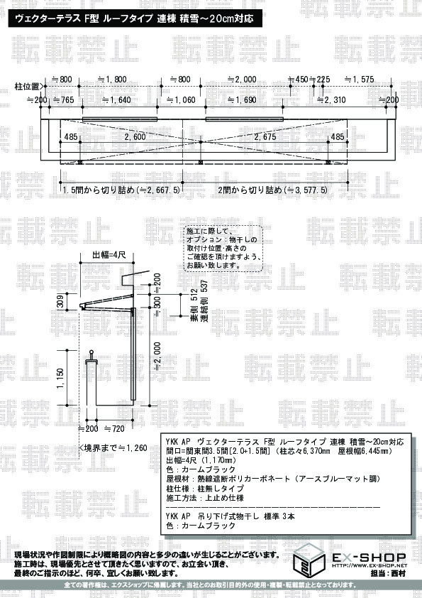 | サイズ | 屋根幅 6,445mm 出幅 1,170mm |