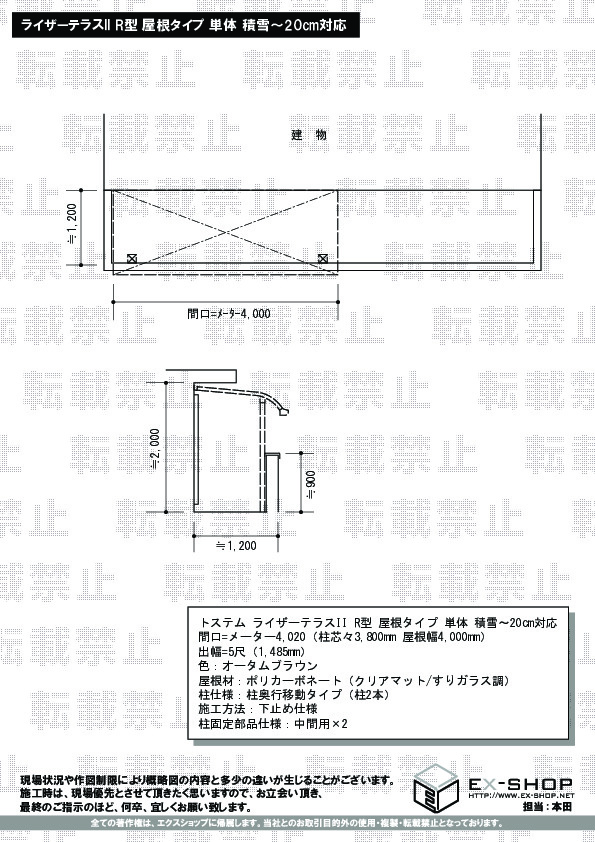 サイズ | 屋根幅 4,000mm 出幅 1,485mm |
