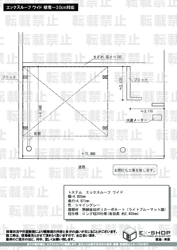 | 屋根高等 | ロング柱24仕様(有効高 約2,400mm) |