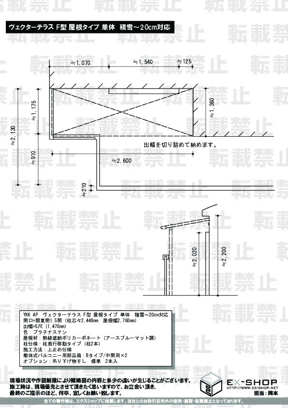 | サイズ | 屋根幅 2,760mm 出幅 1,470mm |