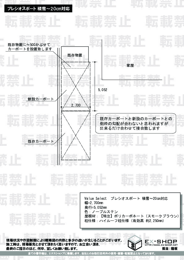 | 屋根材等 | ポリカーボネート(スモークブラウン) |