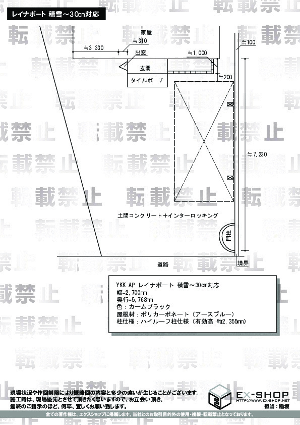 外構を調べていてYouTubeを良く見ていましたがお勧めがエクスショップだったので3台用で見積りを取ってみて希望に近かったので決めましたが、実際に決定した見積りは設置業者さんお勧めの組合せが良かったので変更して決定しました。設置してから霜が降りる寒い日や雨の日の乗り降りが大変楽になり設置して良かったです。