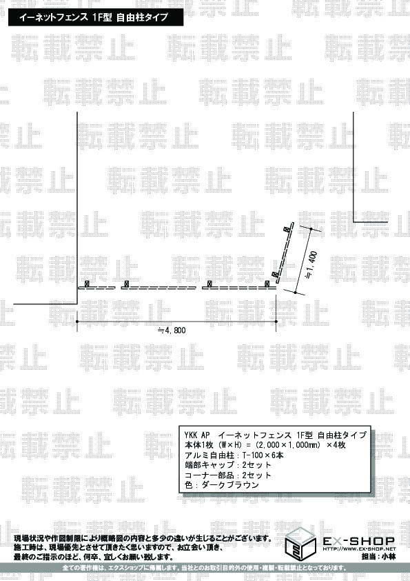 施工を伴います商品をインターネットでご依頼頂く際、ご不安に思われる点もあったかと存じますが、弊社スタッフや施工担当者の対応にご満足頂き、誠に光栄に存じます。軽やかなイーネットフェンス 1F型でございますが、お客様の敷地をしっかりとガードする安心感がございますね。今後も絶えず企業努力を続け、更にお客様にご満足頂けるサービスを目指すよう、努めて参ります。また機会がございましたら、是非エクスショップにご用命くださいますよう、宜しくお願い致します。