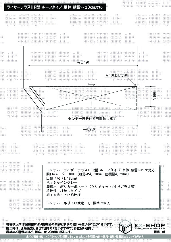 サイズ | 屋根幅 4,020mm 出幅 1,185mm |