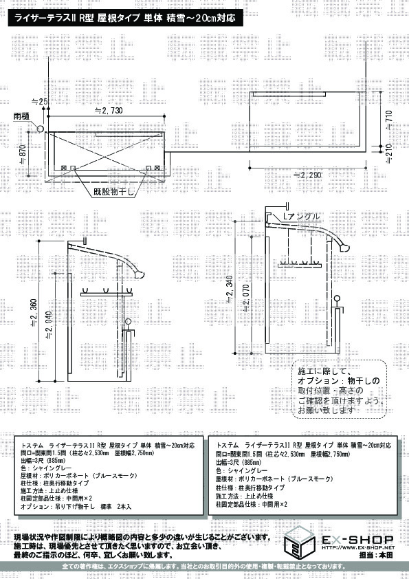 | サイズ | 屋根幅 2,750mm 出幅 885mm |
