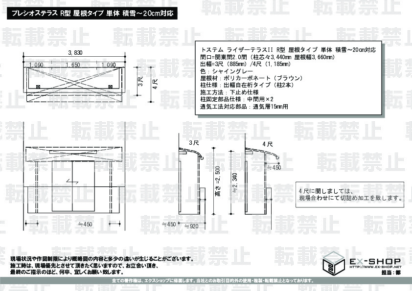 | サイズ | 屋根幅 3,670mm 出幅 1,170mm |