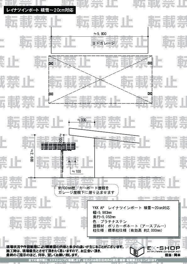 屋根高等 | 標準柱仕様(有効高 約2,000mm) |
