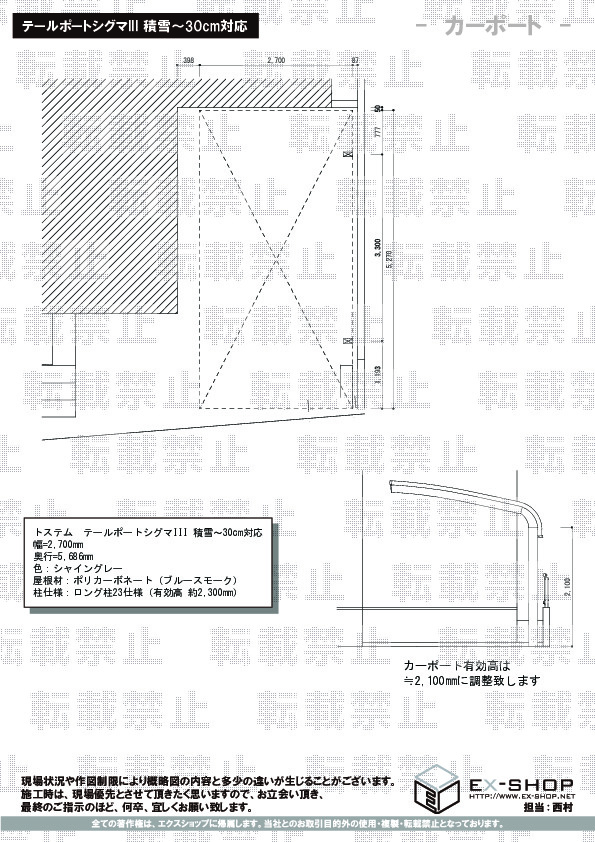 | 屋根高等 | ロング柱23仕様(有効高 約2,300mm) |