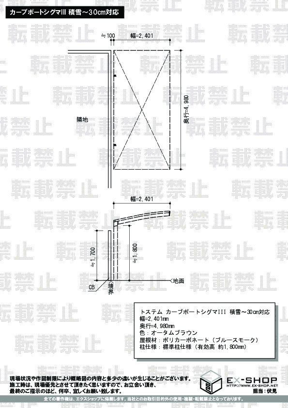 | 屋根高等 | 標準柱仕様(有効高 約1,800mm) |