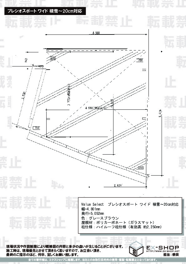 プレシオスポート ワイドタイプの、堂々としたお仕上がりに、私どもも嬉しく存じます。ポリカーボネート(ガラスマット)の屋根材が光を通し、圧迫感のないお仕上がりでございますね。ワイドタイプのカーポートの屋根材の斜めカットでございますが、現場調査の際ご説明させて頂きました通り、メーカーの規定した安全基準に基づき、弊社ではお断り致しております。施工にお伺い致しました担当者のご説明が至らず申し訳ございませんでした。今後も絶えず企業努力を続け、更にお客様にご満足頂けるサービスを目指すよう、努めて参ります。この度のご利用、誠に有り難うございました。
