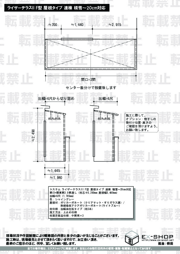 サイズ | 屋根幅 5,480mm 出幅 1,785mm |