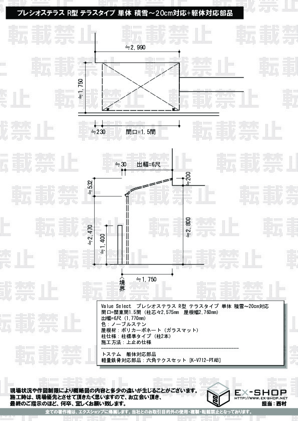 サイズ | 屋根幅 2,760mm 出幅 1,770mm |