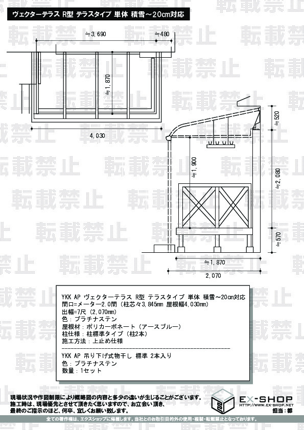 | サイズ | 屋根幅 4,030mm 出幅 2,070mm |