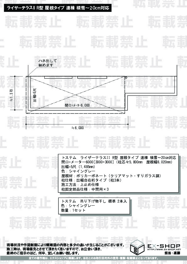 サイズ | 屋根幅 6,020mm 出幅 1,485mm |
