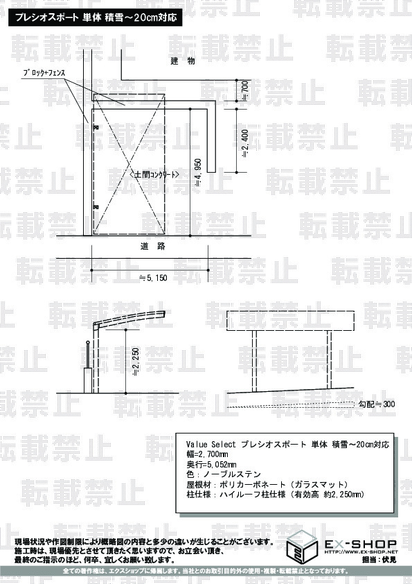 【商品カテゴリ >カーポート】(ご質問No.707)