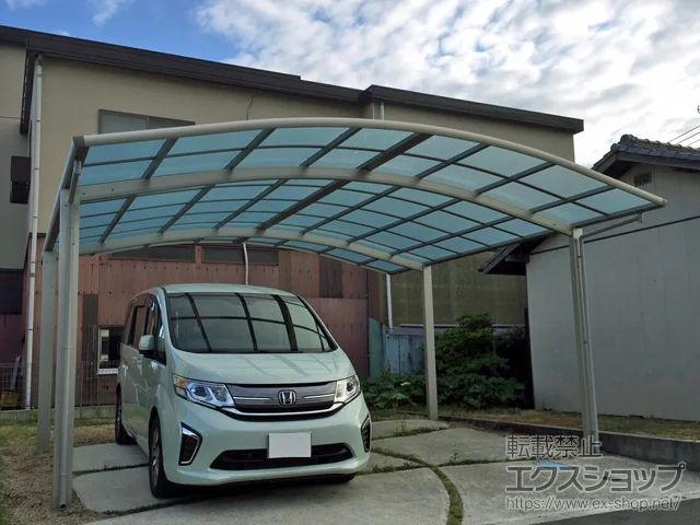 ネスカ R 2台用(ラウンドスタイル)は大きなアール仕様の屋根が特徴的な横並び2台駐車可能のカーポートです。標準柱が2200mmとなっており大半の車種に対応可能。耐風性能は基準風速Vo=40m/s、耐積雪性能は20cm相当の耐性があります。