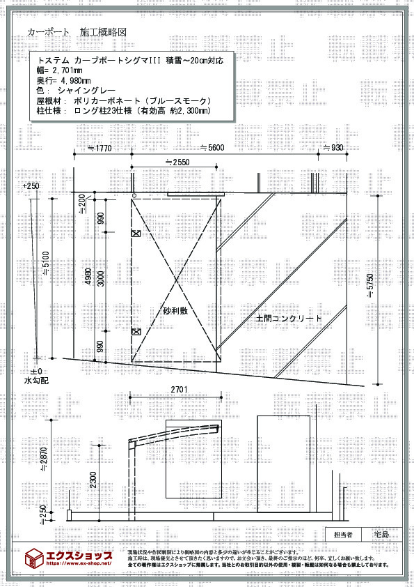 | 屋根高等 | ロング柱23仕様(有効高 約2,300mm) |