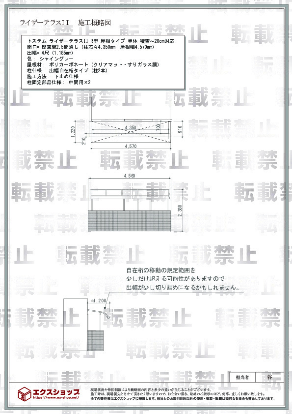 | 柱仕様 | 出幅自在桁タイプ(柱2本) |