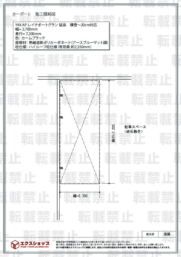 今度新車を購入するのに、炎天下では、車が焼けるので、カーポートを設置したかったので。色々ネットでみて、ホームセンターをみてみましたが、エクスショップさんが1番でした。現場を見ていただいて見積もりをいただいて、バッチリでした。工事を担当していただいた業者さんも、暑い中、頑張っていただきました。本当にありがとうございました。
