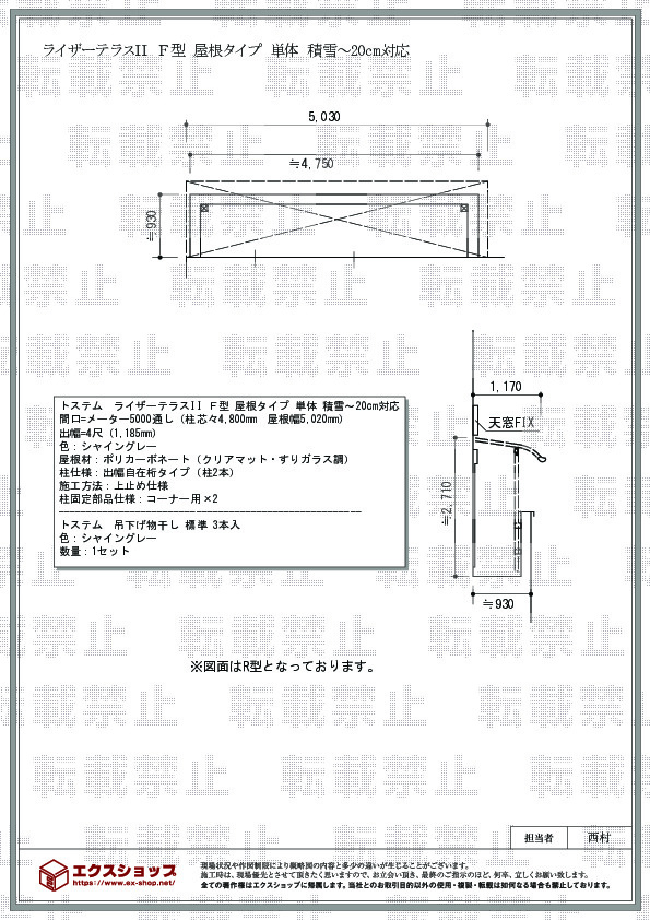 | サイズ | 屋根幅 5,020mm 出幅 1,185mm |