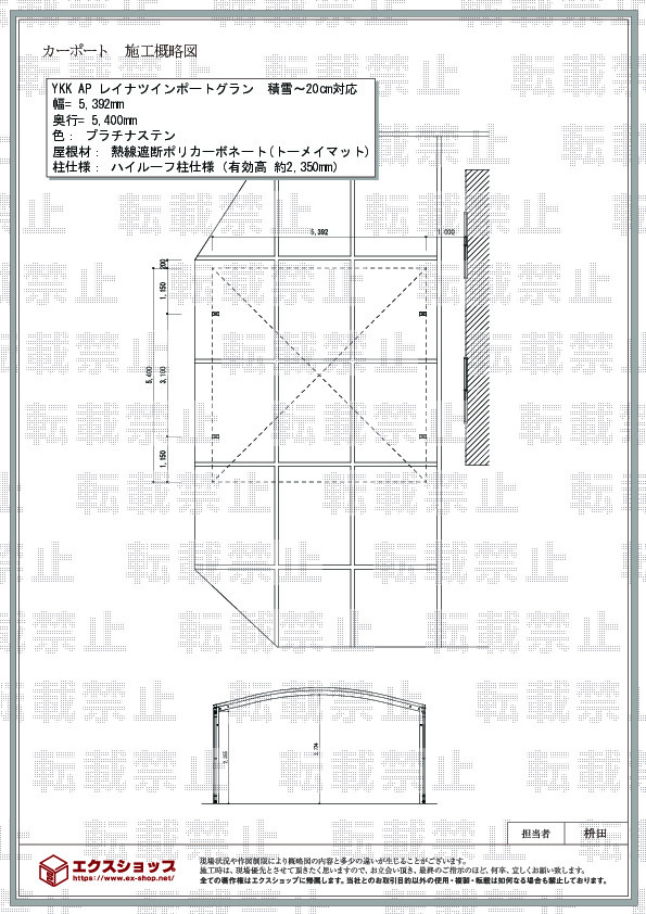 この度は、レイナツインポートグランの施工をご依頼頂きまして、誠に有り難うございます。アーチ状のカーポートが、大切なお車を包み込み、安心感のあるお仕上がりでございますね。お気に召して頂き、永くご愛用頂けましたら幸いでございます。今後は、丁寧な対応とともに、スピードの面でもご満足頂けますよう、努力して参りたいと存じます。また機会がございましたら、是非エクスショップにご用命くださいますよう、宜しくお願い致します。