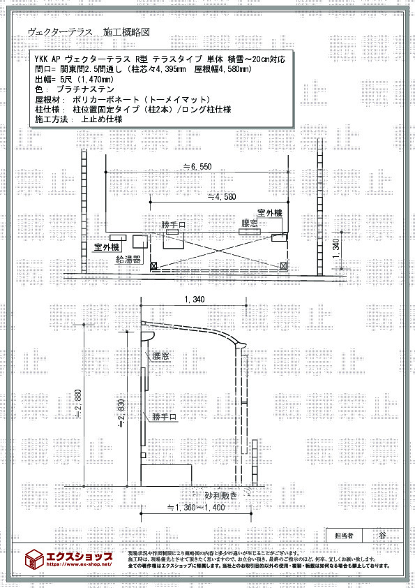 サイズ | 屋根幅 4,580mm 出幅 1,470mm |