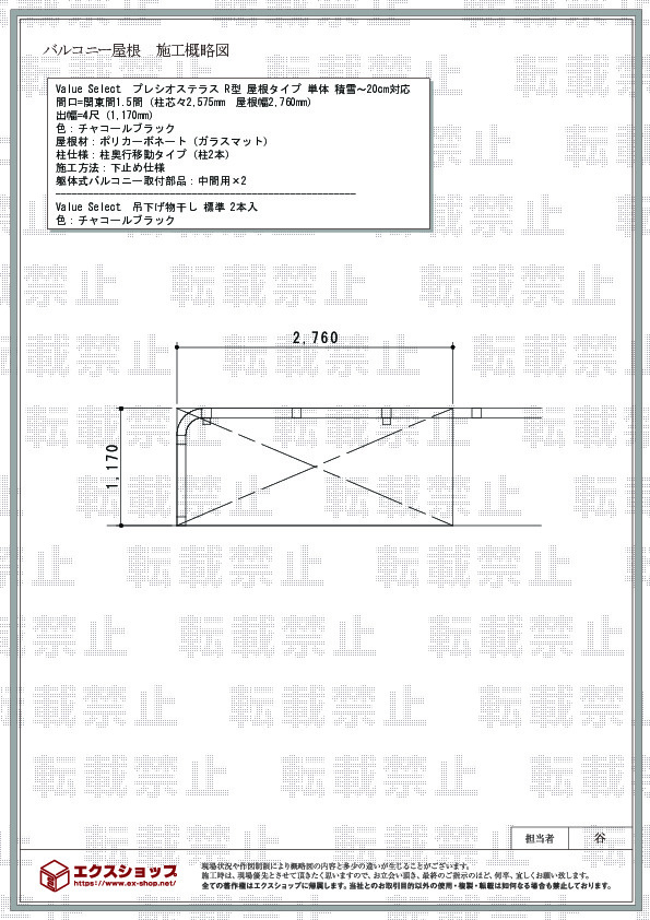 | サイズ | 屋根幅 2,760mm 出幅 1,170mm |