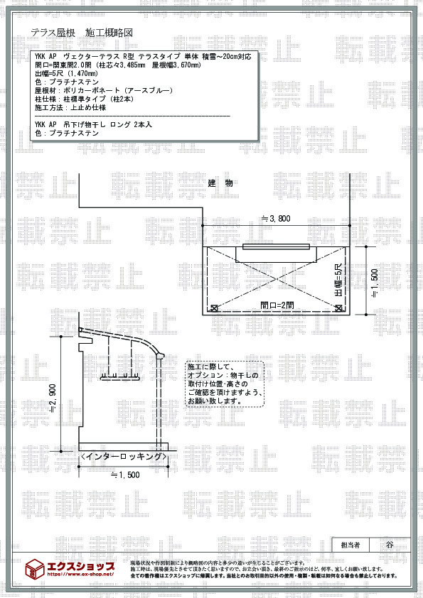 サイズ | 屋根幅 3,670mm 出幅 1,470mm |