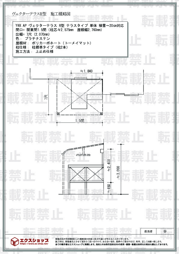 | サイズ | 屋根幅 2,760mm 出幅 2,070mm |