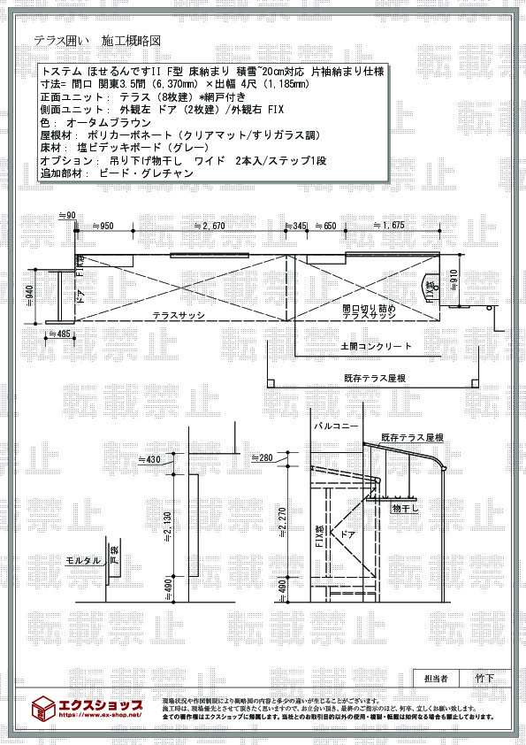 | サイズ | 間口 6,370mm 出幅 1,185mm |