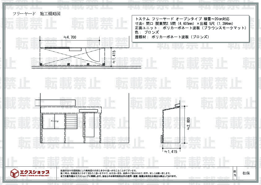 | サイズ | 間口 4,605mm 出幅 1,394mm |