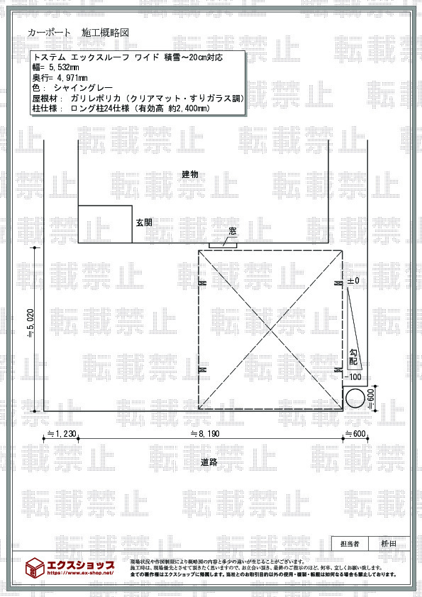この度は、エックスルーフの施工をご依頼頂きまして、誠に有り難うございます。シャイングレーのフレームに、ガリレポリカ(クリアマット・すりガラス調)の屋根材が、とても明るく、清々しいお仕上がりでございますね。今後は、お客様に100%ご満足頂けるサービスを目指し、企業努力を重ねて参ります。また機会がございましたら、エクスショップをご用命頂ければ、幸いでございます。