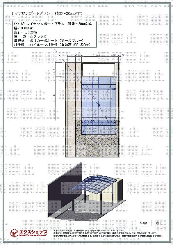 昨年購入した車両は高さが2,250mmあり構造的にルーフには乗れず、洗車がとても大変で苦労していました。現在3連のカーポートはありますが高さが2,400mmの所があり納まりません。高さがクリアーできるカーポートを探した所エクスショップに辿り着きました。価格、保証等説明を聞き、クチコミにも後押しされ決めさせて頂きました。現地調査も準則にして頂き設置も近くの業者様により、2日で完了しました。設置後雨が降りましたが、車両が濡れないため雨垂れ等無くとても満足しております。また機会がありましたらその際は是非お願いしたいと思います。大変有り難う御座いました。