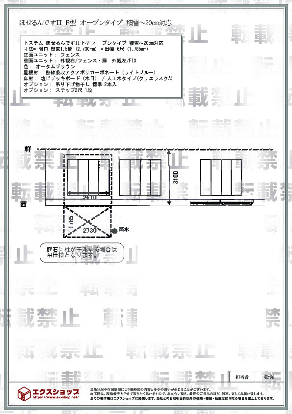 サイズ | 間口 2,730mm 出幅 1,785mm |