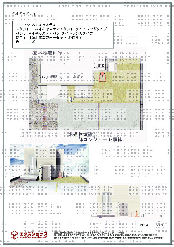 この度は、ネオキャスティの施工をご依頼頂きまして、誠に有り難うございます。顔のみえないネット販売で高額の商品をご購入頂く際に、ご不安に思われるのもごもっともでございます。にもかかわらず、弊社を信頼して、施工までお任せ頂き、誠に光栄でございます。立水栓の素敵なお仕上がりに私どもも大変嬉しく存じます。レンガの持つ温もりに心が落ち着く、お庭周りでございますね。今後益々精進して参りますので、また機会がございましたら、ぜひ弊社をご用命くださいますよう、お願い申し上げます。