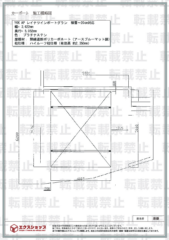 この度は、エクスショップをご利用頂きまして、誠に有り難うございます。レイナツインポートグランが、堂々としていて、頼もしい存在でございますね。雨天の際の施工延期のご説明が至らず、誠に申し訳ございませんでした。今後は、格安で最高品質の商品のご提供にこだわるとともに、安心してお任せ頂ける対応を心掛けて参ります。また機会がございましたら是非、弊社にご用命下さいますよう宜しくお願い申し上げます。