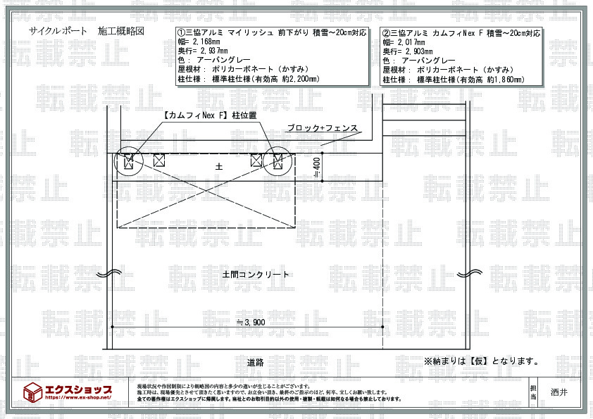新製品であったこと(三協アルミ社 ニューマイリッシュ)、屋根の高さが低すぎず・高すぎずの2,200mmの設定があったことが良かったです。工事により屋内のプライバシーも向上でき、非常に満足です。エクスショップの良さは価格だけでなく、豊富な情報量と明確な見積にあると思います。