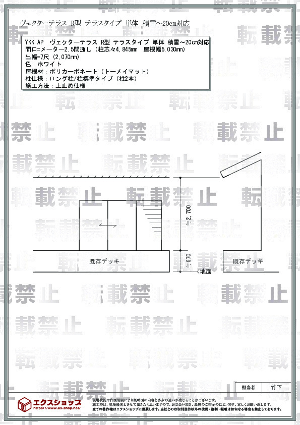 | サイズ | 屋根幅 5,030mm 出幅 2,070mm |