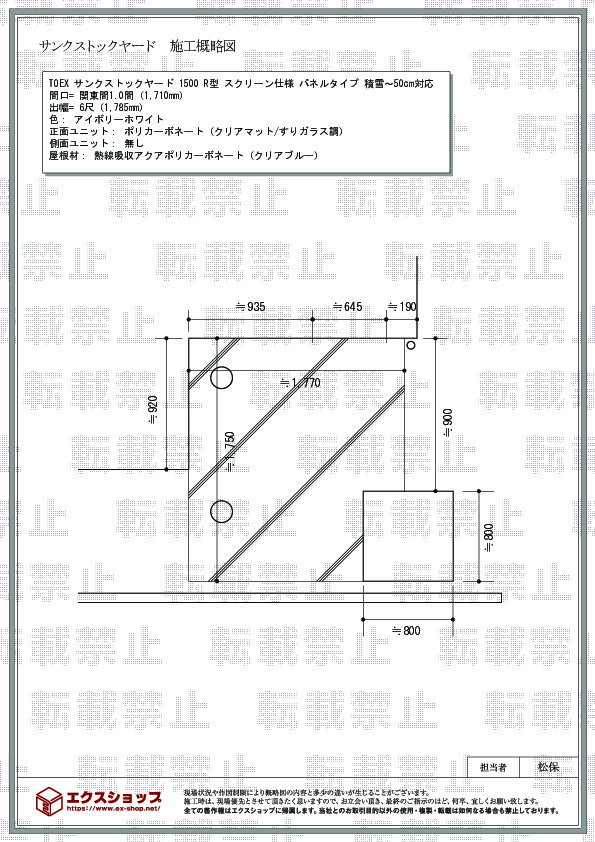 | サイズ | 間口 1,710mm 出幅 1,785mm |
