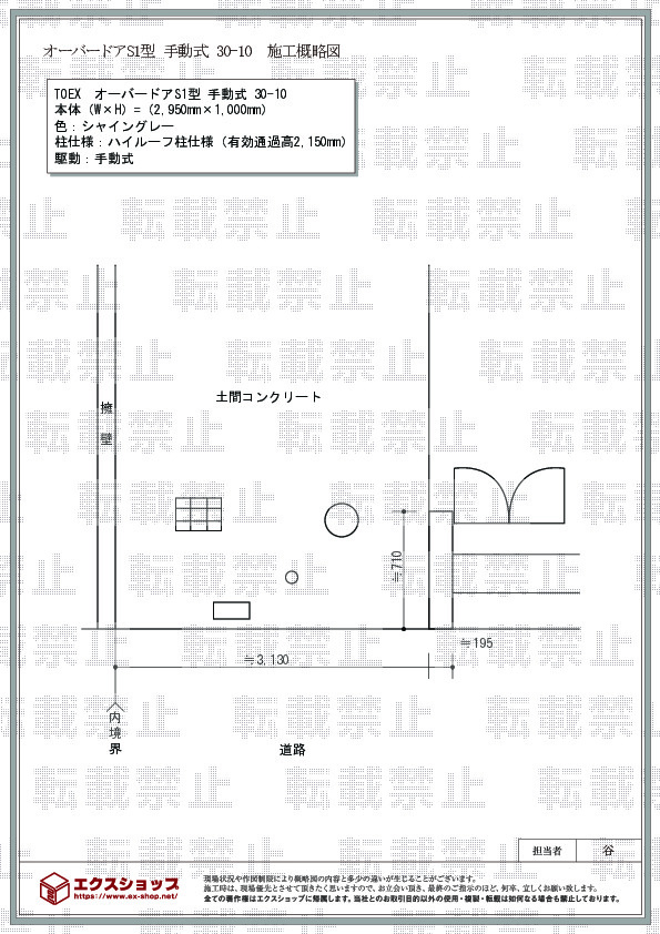 TOEX ワイドオーバードアR1型 ハイルーフ電動タイプ 5400x1000