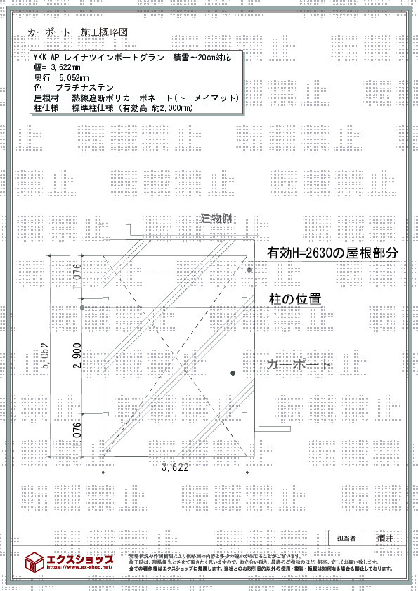 屋根高等 | 標準柱仕様(有効高 約2,000mm) |
