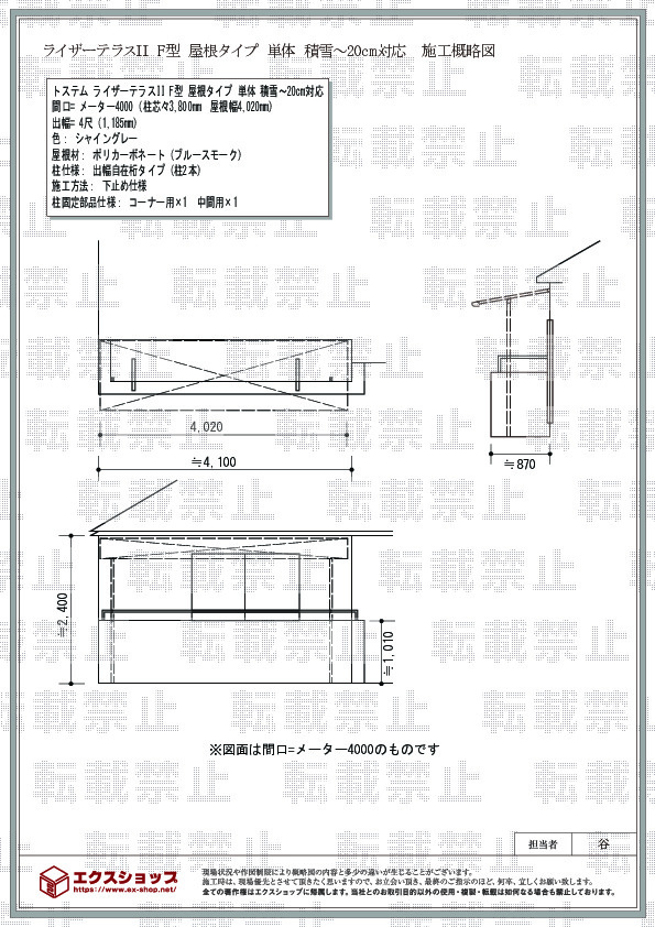 | サイズ | 屋根幅 4,020mm 出幅 1,185mm |