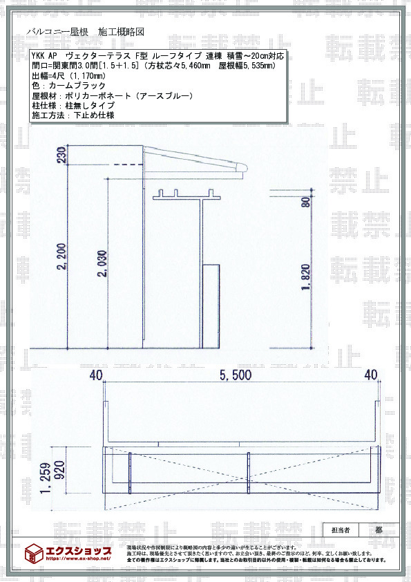 | サイズ | 屋根幅 5,535mm 出幅 1,170mm |